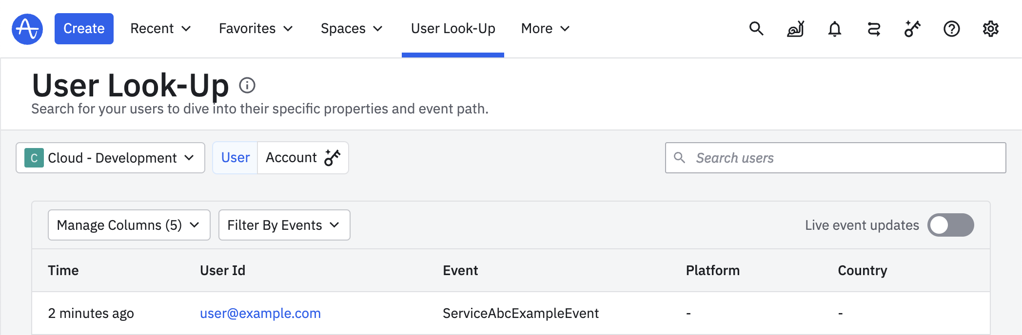 In the Amplitude dashboard, you should be able to verify the test event arrive under User Look-up